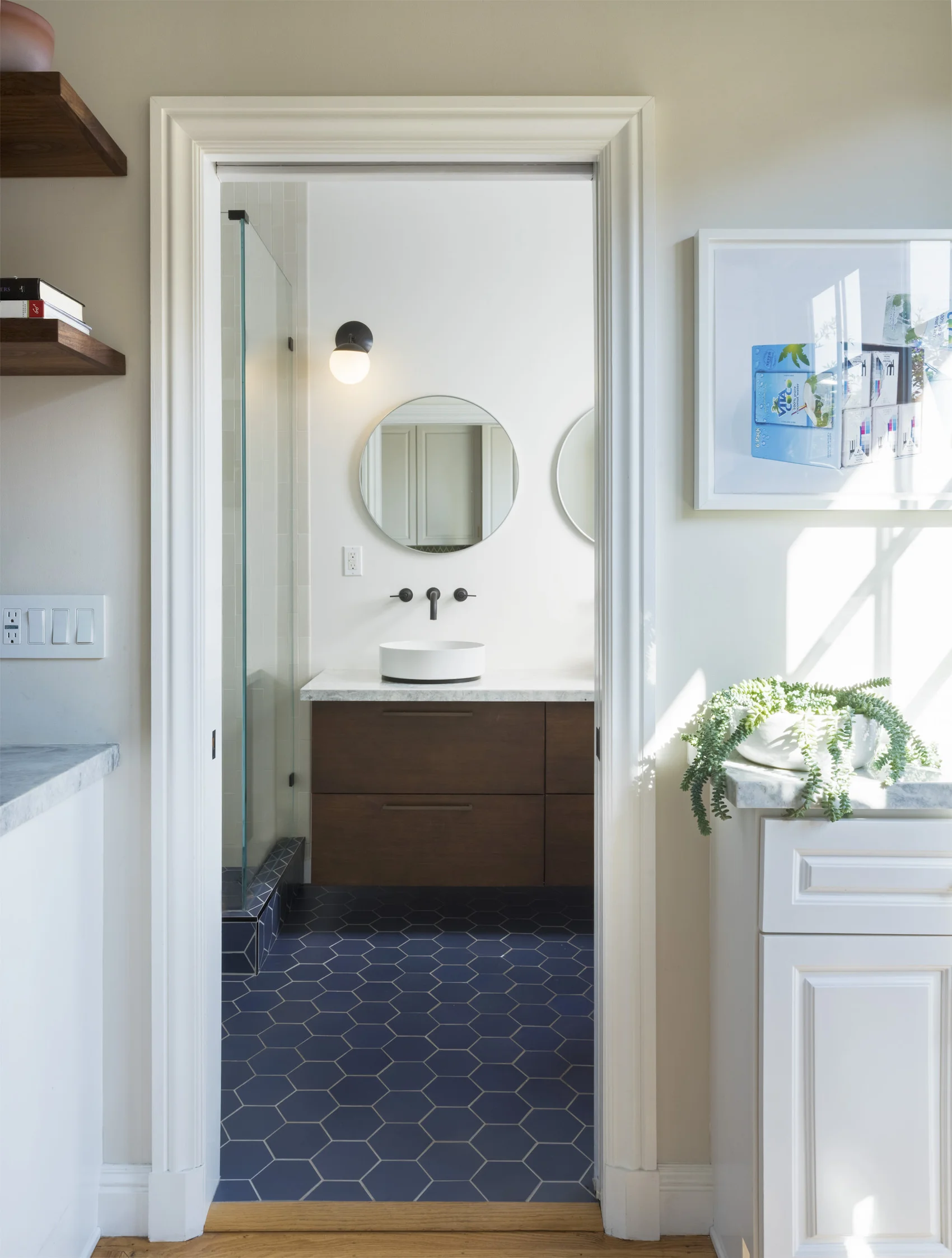 Some special moments to mention include the large tub window that frames a view of the Golden Gate bridge, three bathroom skylights that provide ample natural lighting (the absolute best for a bathroom!) the sliding door system to the deck and beautiful decorative light fixtures used throughout.